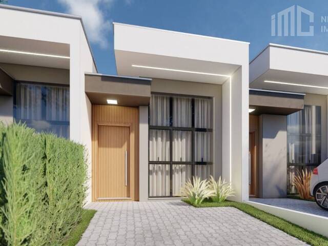 Código 2290 - Casa geminada 02 (EM FASE DE CONSTRUÇÃO), terreno com área total de 96,00m² (4,00x24,00), área construída de 65,30m², 3 dormitórios, sala e cozinha integrada, banheiro, jardim de inverno, área de serviço, vaga de garagem e quintal